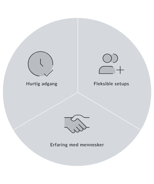Vi er med dig fra start til slut, følger op undervejs og tager ansvar hele vejen. Behov ændrer sig, og vi justerer eller skalerer gerne i tæt dialog med jer.